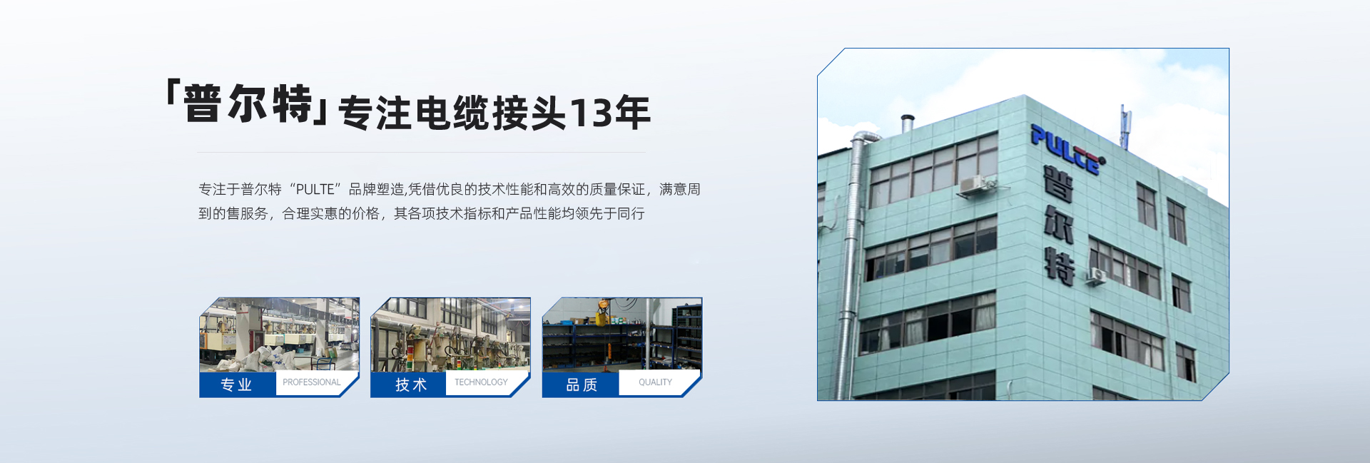 普爾特電氣科技(溫州)有限公司是一家專業(yè)生產(chǎn)電纜接頭,防水接線盒的專業(yè)廠家,它誕生在"中國電器之都"柳市鎮(zhèn),是一家集研發(fā)、生產(chǎn)、銷售于一體的專業(yè)化現(xiàn)代企業(yè)。 專注于普爾特“PULTE”品牌塑造,憑借優(yōu)良的技術(shù)性能和高效的質(zhì)量保證,滿意周到的售服務(wù),合理實惠的價格,其各項技術(shù)指標和產(chǎn)品性能均領(lǐng)先于同行,廣泛應(yīng)用于接線盒、配電柜、通訊設(shè)備、儀器儀表、醫(yī)療器械、機床機械等多個領(lǐng)域;不斷推陳出新,研發(fā)新品,形成多系列多品種的防水電纜接頭,防水接線盒,堵塞件,電纜接頭配件,軟管防水接頭等產(chǎn)品,有效拓寬了企業(yè)的市場渠道,增強了市場競爭力,為擴大企業(yè)規(guī)模奠定了基礎(chǔ)。       公司技術(shù)力量雄厚,由一批行業(yè)資深人士共同組建,在電纜接頭制造領(lǐng)域具有領(lǐng)先地位。 我們擁有完善的質(zhì)量保證體系和豐富的設(shè)計制造經(jīng)驗,以產(chǎn)品的高品質(zhì)、高可靠性廣泛應(yīng)用于各個行業(yè),為全球需求者提供專業(yè)、高質(zhì)量的電纜配套產(chǎn)品,相信在我們完整的系列產(chǎn)品中一定能有一款滿足您的需求。      公司始終堅持“為顧客創(chuàng)造滿意產(chǎn)品”的經(jīng)營理念,以質(zhì)量占領(lǐng)市場,以科技塑造品牌,不斷實現(xiàn)企業(yè)的持續(xù)向前發(fā)展。本公司可以根據(jù)客戶的要求,進行模具開發(fā)和生產(chǎn)。竭誠歡迎國內(nèi)外新老客戶前來公司考察及洽談合作,共同創(chuàng)造美好的明天。 ...